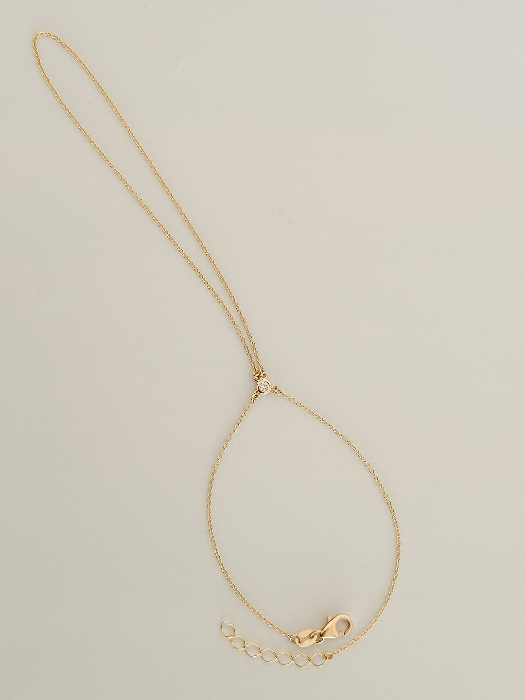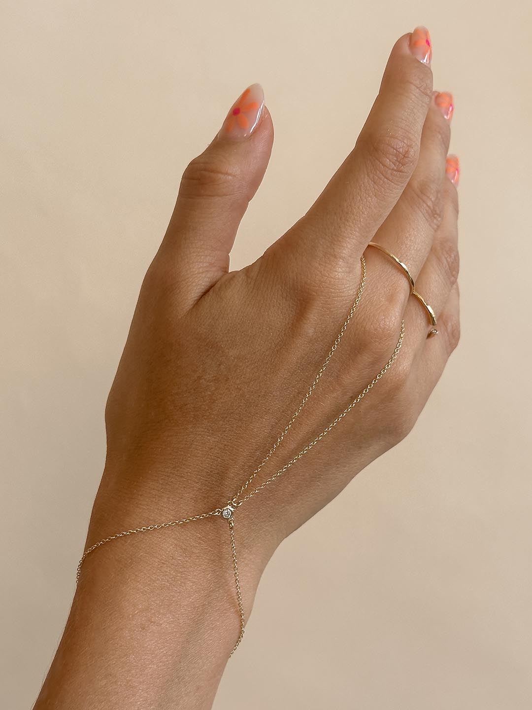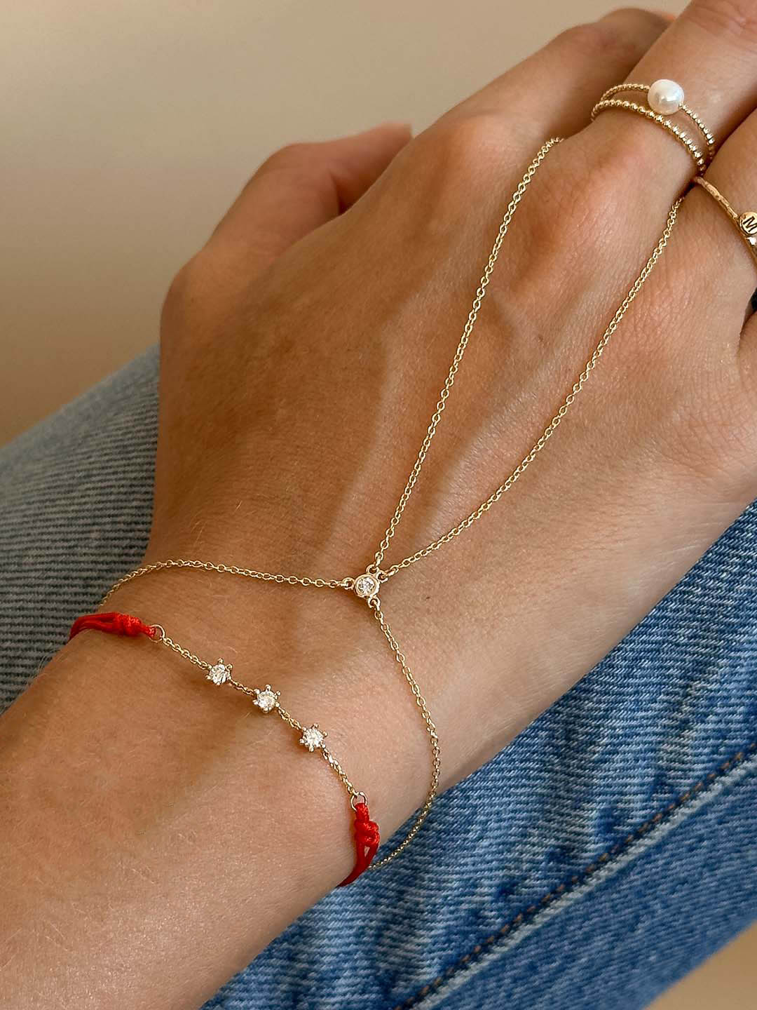 Gold Hand Chain Bracelet with Diamond, 14k Solid Yellow Gold