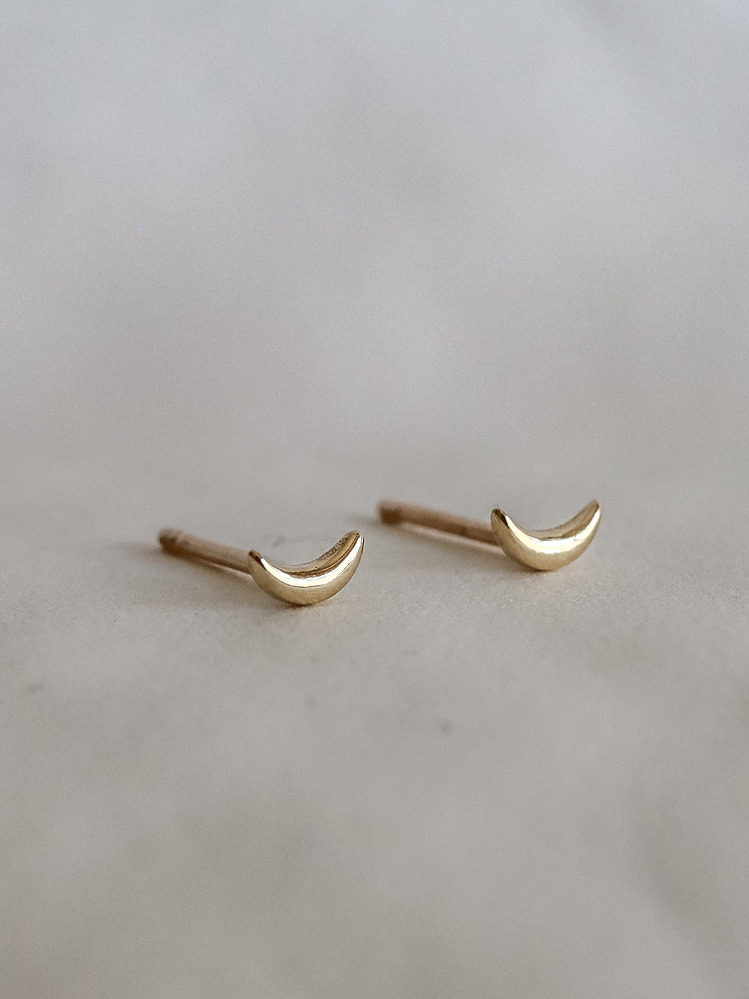 moon stud earrings / 14K Gold