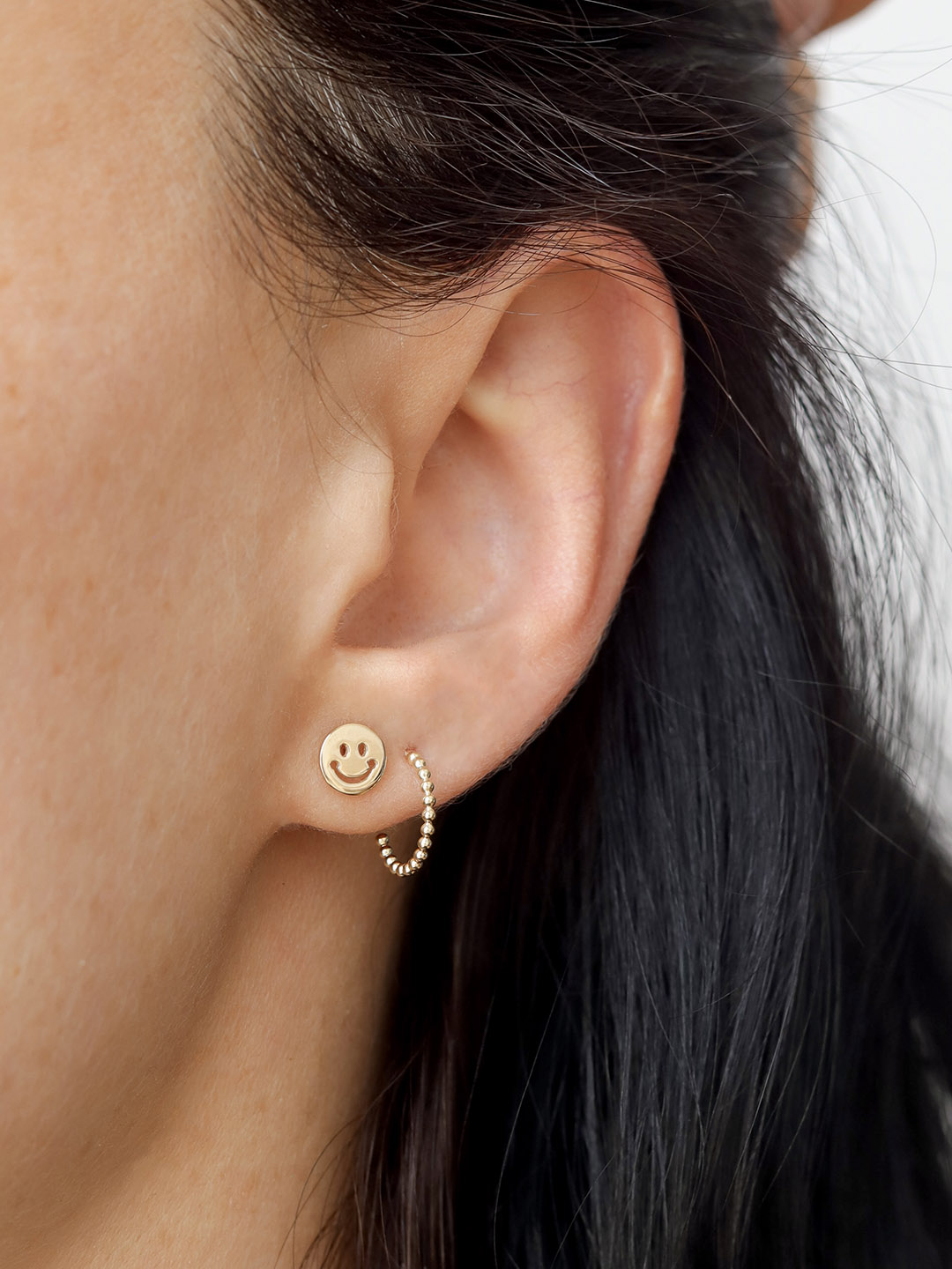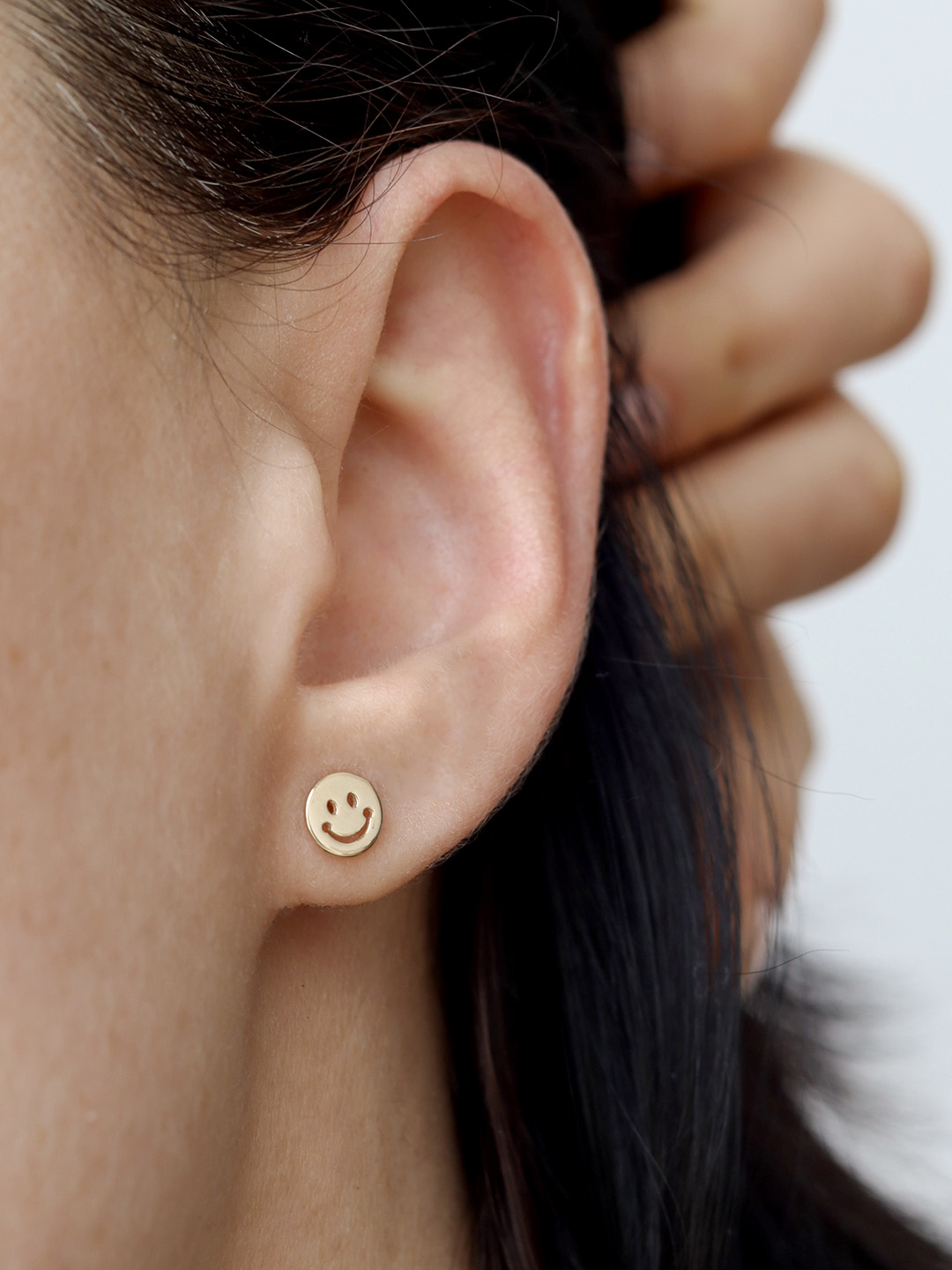 Brighten your day (and your ears!) with these adorable 14K gold smiley face stud earrings. Crafted from solid yellow gold, these petite studs feature a polished smiley charm that adds a playful, feel-good touch to any look. Their minimalist design makes them perfect for everyday wear, whether you’re dressing casually or adding a little sparkle to a more polished outfit.