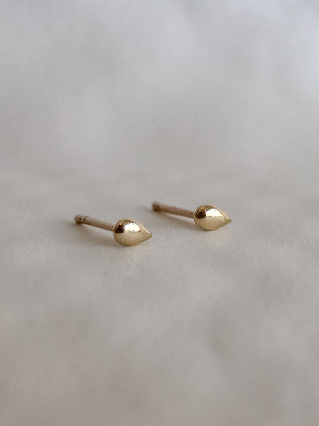 Teardrop Gold Stud Earrings, 14K Solid Yellow Gold